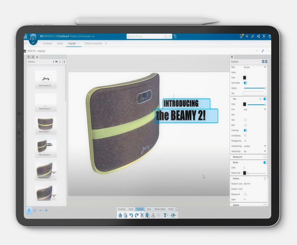 Como parte deste processo, os profissionais de marketing, criadores de conteúdo e projetistas podem colaborar todas informações necessárias de maneira eficiente para o desenvolvimento e criação de conteúdo perfeito para o mercado, antes mesmo da fabricação do produto. Estas soluções 3DEXPERIENCE WORKS permitem que todos os dados sejam acessados, em qualquer lugar e com qualquer dispositivo por meio de um navegador, proporcionando um ambiente ideal para concretizar a concepção dos conteúdos e levá-los ao mercado mais rapidamente.