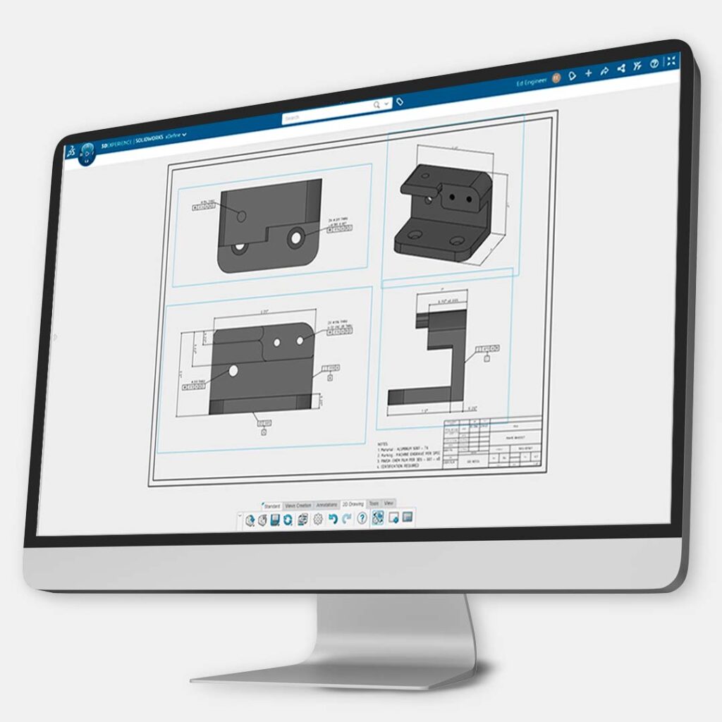 O Manufacturing Definition Creator é uma função baseada em navegador do portfólio do 3D EXPERIENCE® Works que combina recursos baseados em modelos e em desenhos em uma única solução. Defina facilmente modelos 3D e produza rapidamente desenhos 2D a partir deles com apenas alguns cliques. A combinação de recursos de definição 2D e 3D oferece flexibilidade de última geração, permitindo que você escolha a melhor saída para o trabalho e atenda às necessidades das partes interessadas.
