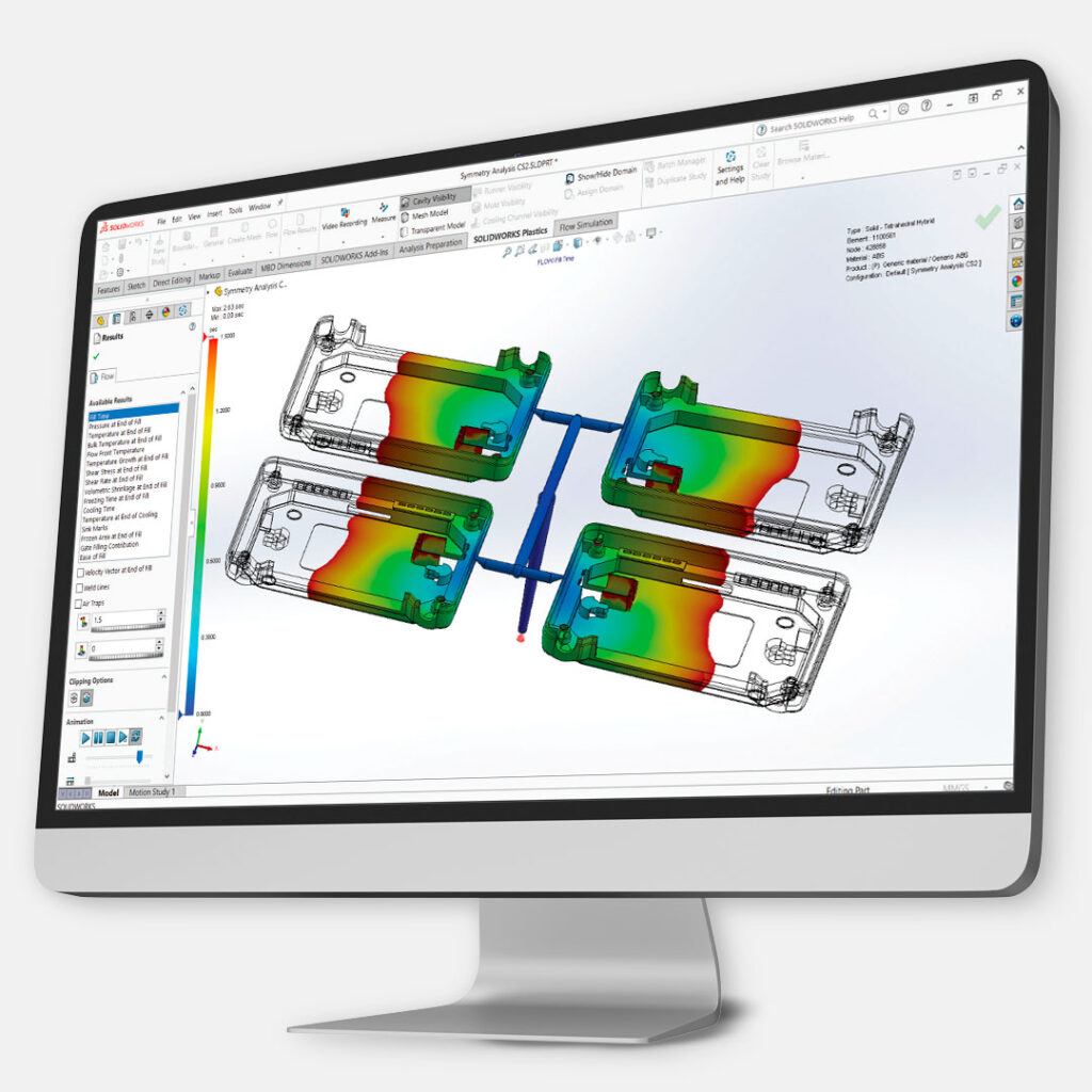 O SOLIDWORKS Plastics oferece suporte aos materiais e configurações do SOLIDWORKS CAD 3D para facilitar as análises e as configurações dos produtos.