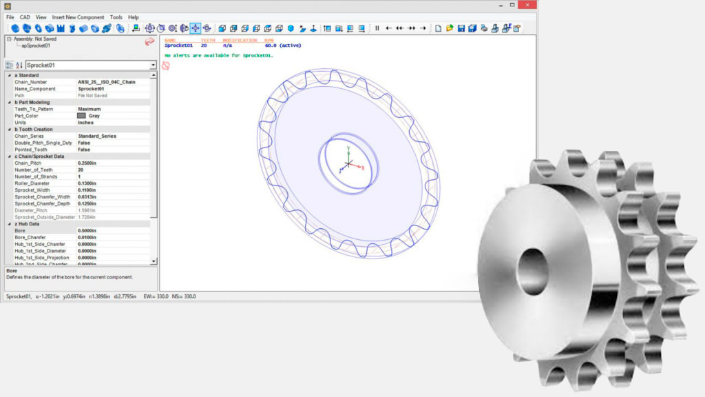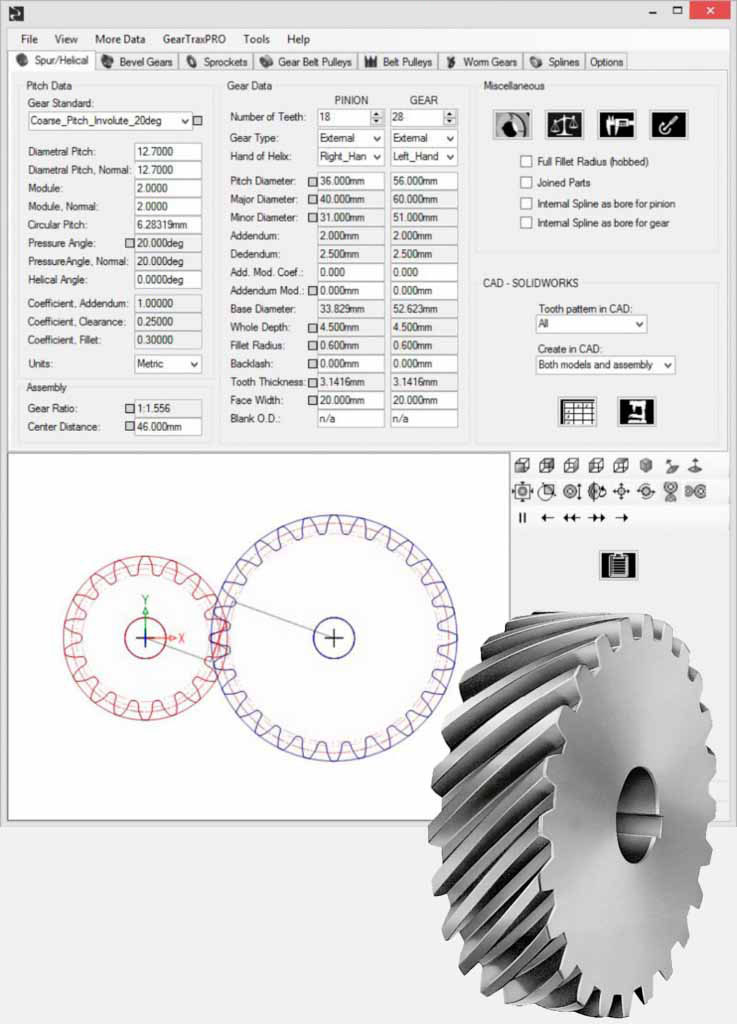 Equipado com tecnologia intuitiva, o GearTeq/GearTrax atende, inclusive, usuários com pouca experiência em engrenagens, e se torna uma poderosa ferramenta para usuários experientes. Sua janela de animação mostra o engrenamento, que é atualizado em tempo real conforme os dados são alterados.