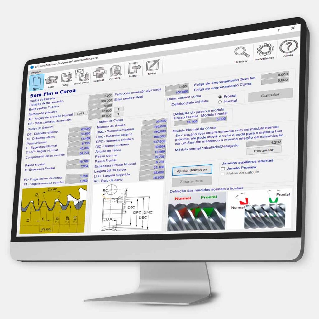 O programa Roda Dentada calcula engrenagens com rapidez, gerando relatórios detalhados e criando desenhos dos dentes compatíveis com sistemas CAD/CAM/CAE e qualquer software que importe DXF. Ele também permite transformações de dados e análises simples de engrenamentos.
