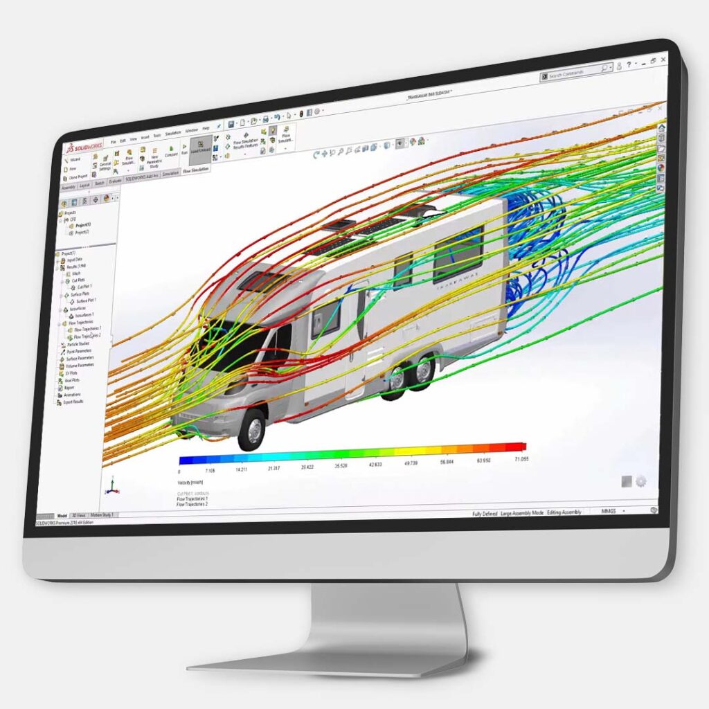 O SOLIDWORKS Flow Simulation é uma solução completa e intuitiva de cálculo de dinâmica de fluídos (CFD) incorporada ao SOLIDWORKS CAD 3D, que permite simular fluxos, de forma interna ou externa de produtos, aumentando o desempenho dos projetos.